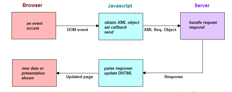 AJAX := JS와 XMLHttpRequest κ°μ²΄λ₯Ό μ‚¬μš©ν•΄μ„œ ν΄λΌμ΄μ–ΈνŠΈμ™€ μ„œλ²„κ°€ λΉ„동기 λ°©μ‹μœΌλ‘œ ν†΅μ‹ ν•˜λŠ” 것